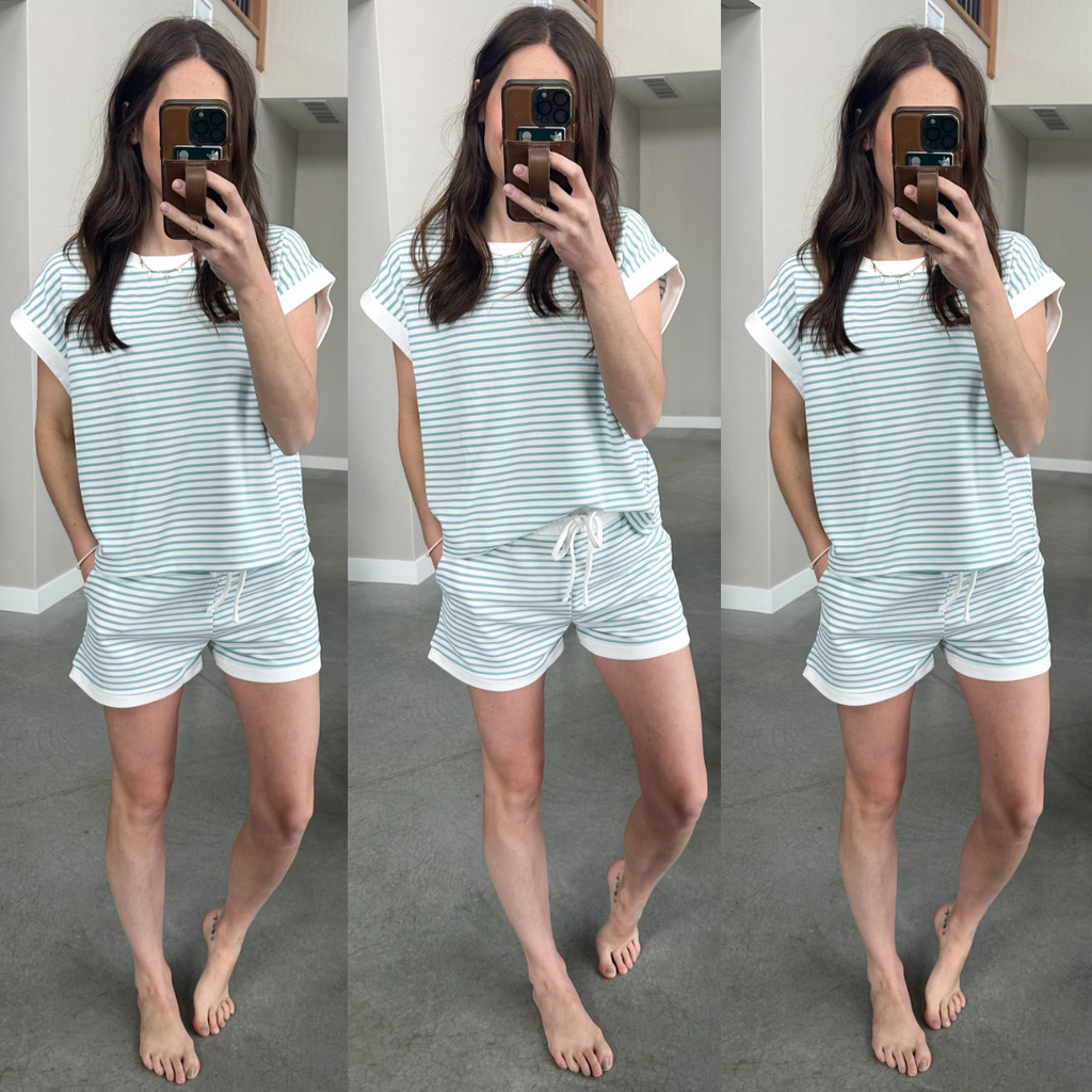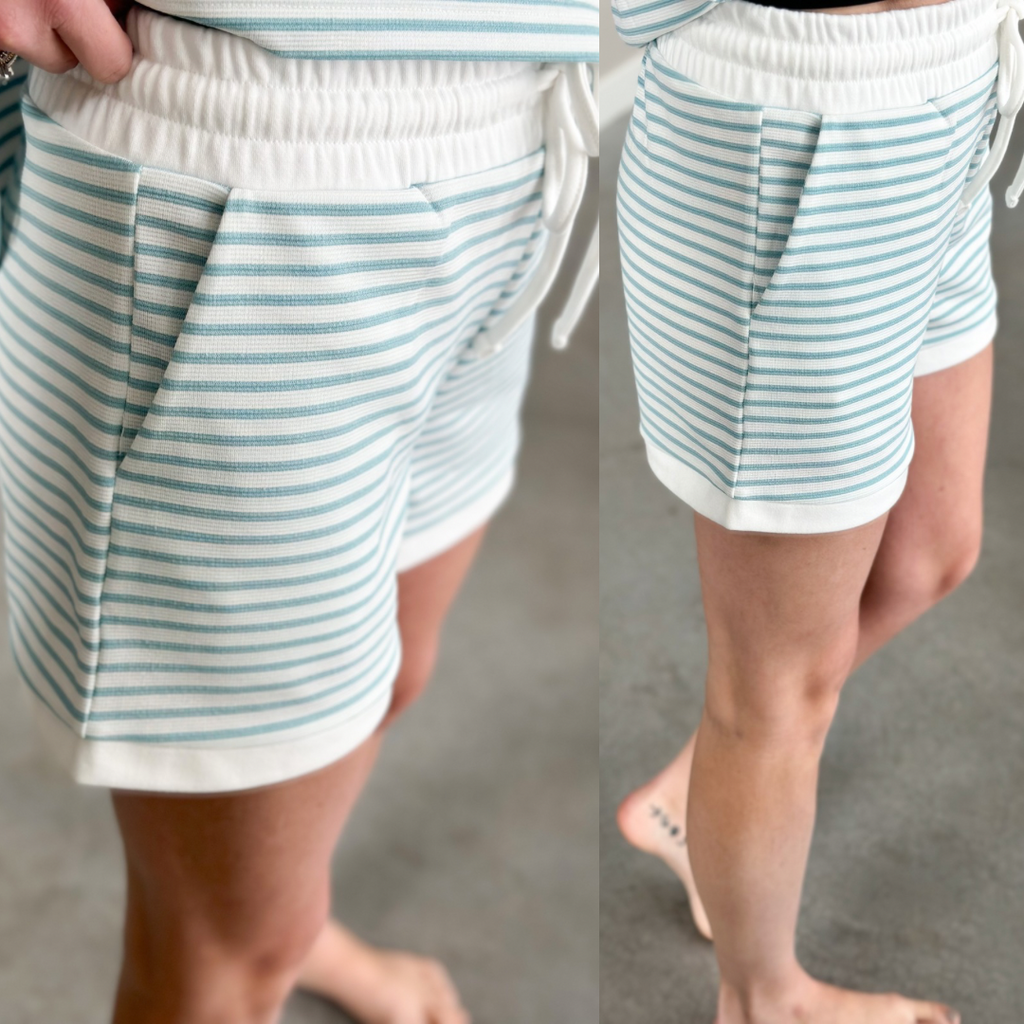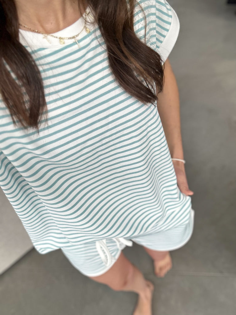 BEAUTIFUL aqua blue set with soft ribbed stripes!