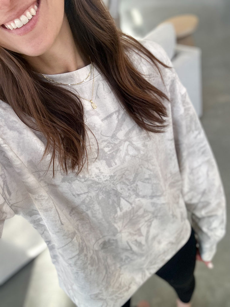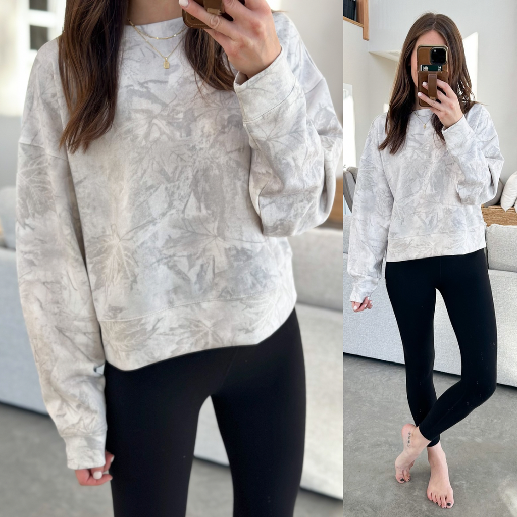 5’5” wearing a Small- true to size or size down for less relaxed fit!