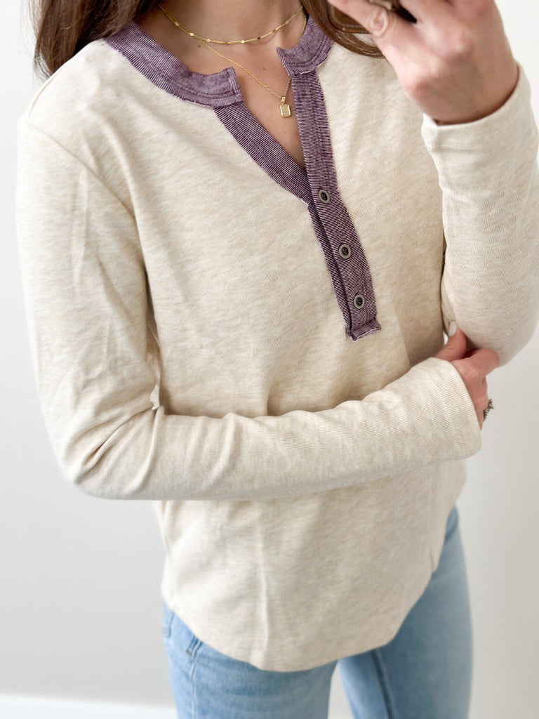 Buttery Henley Contrast [Olive & Purple]