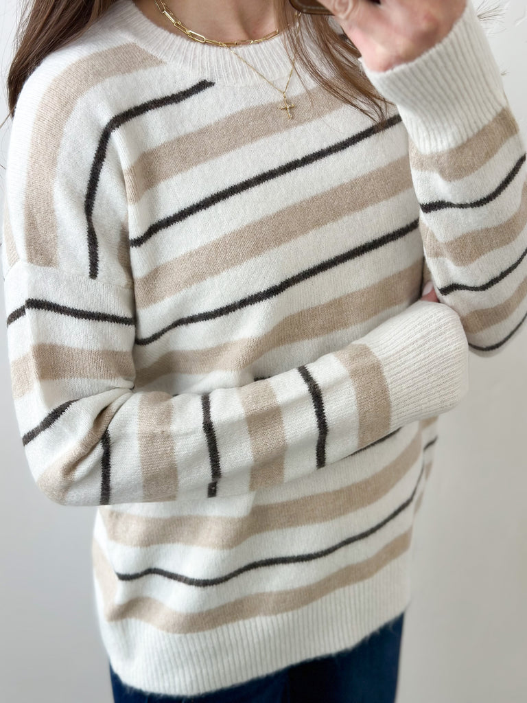 Espresso and taupe stripes on a light weight and SOFT knit fabric! Its heavenly!