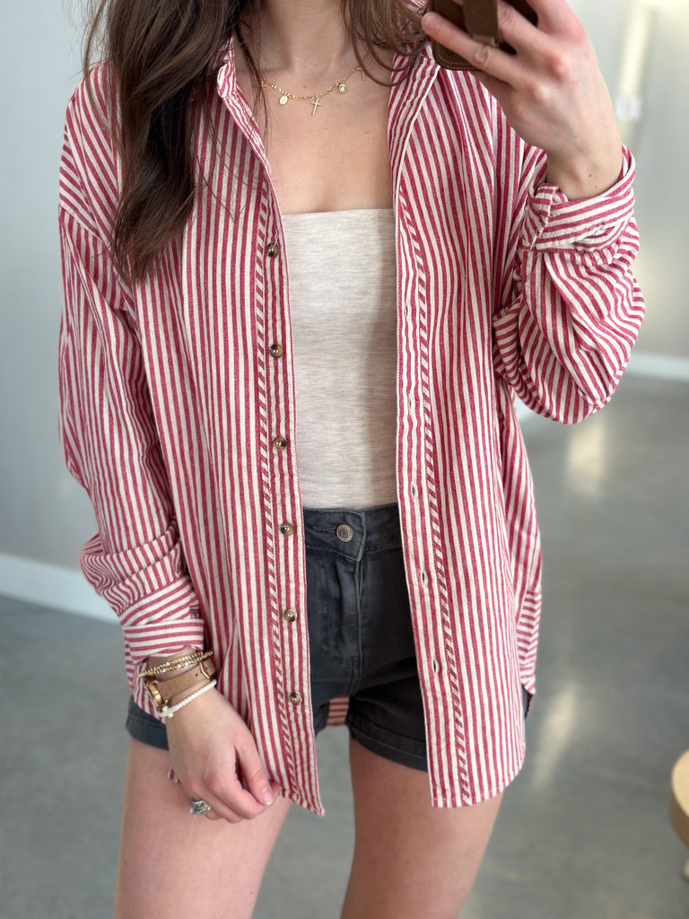 [Dark Mauve & Baby Blue] Stripe Cotton Button Down