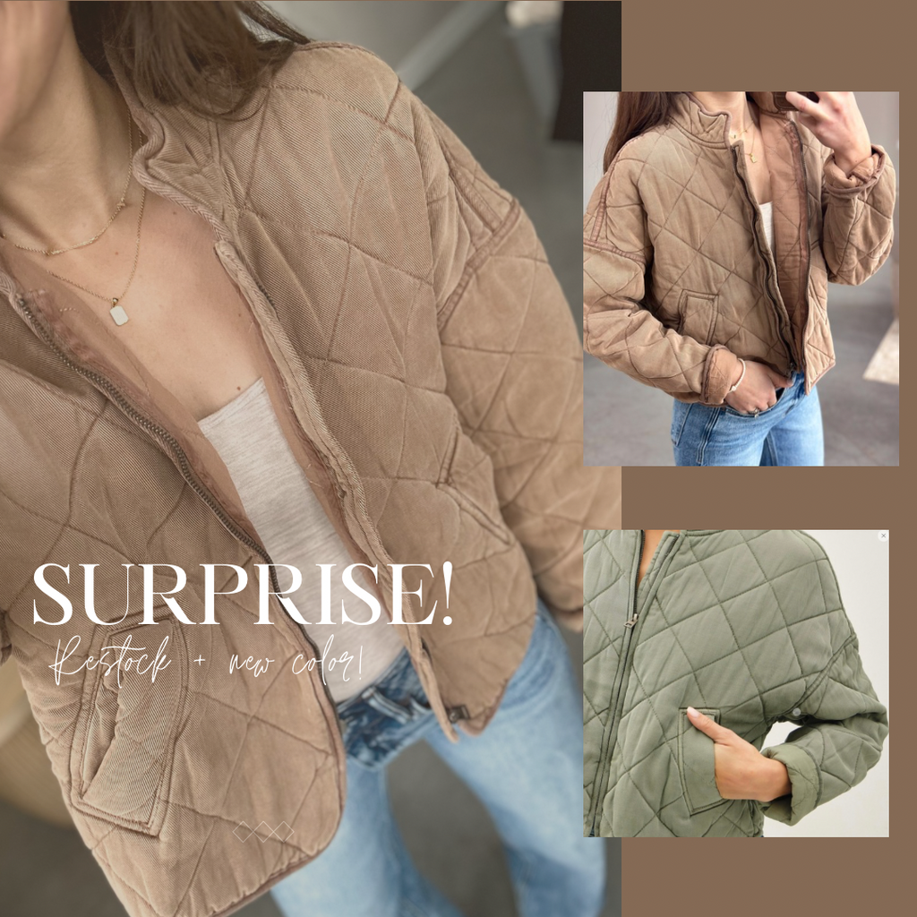 Dreamy Soft Quilted Jacket [olive & camel] ready around 12/30!