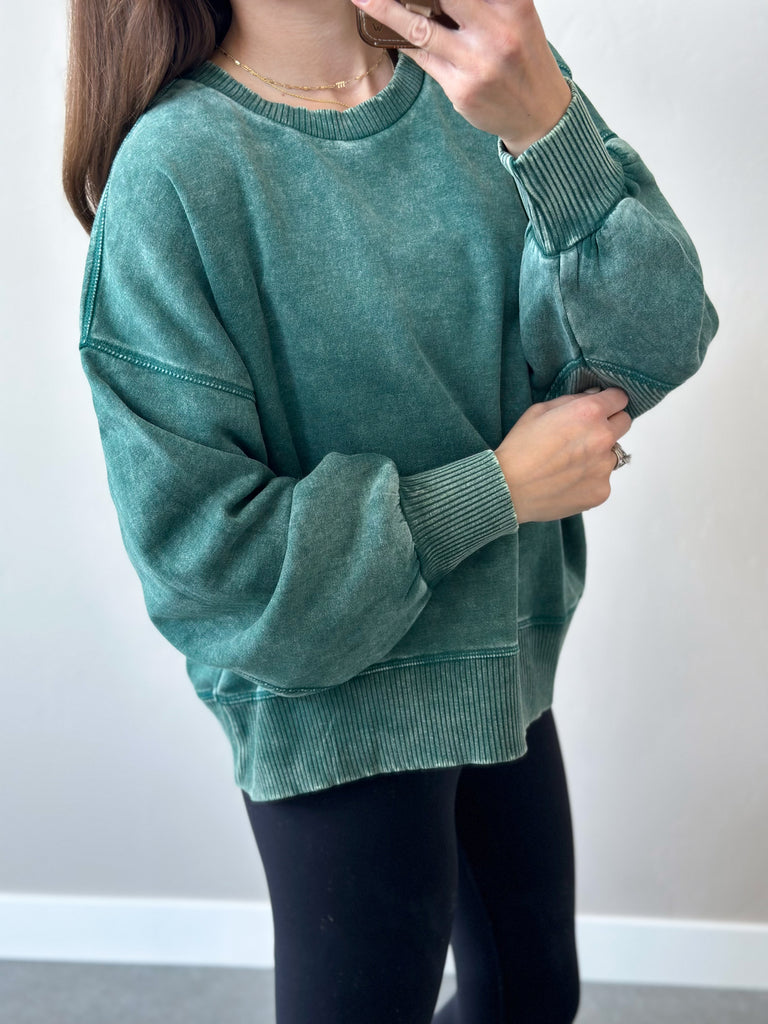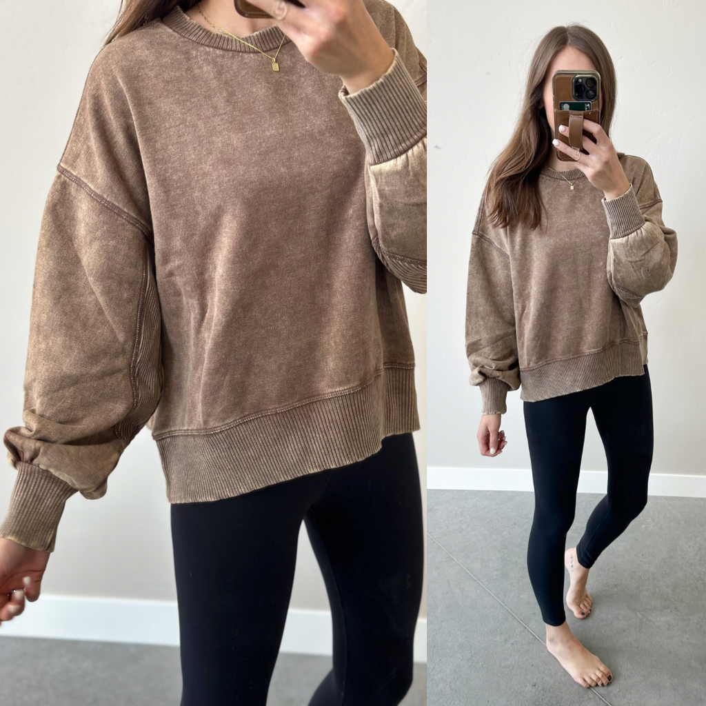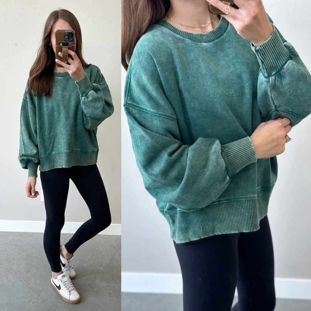 Loose but ribbed bottom hem and ribbed inside of the arms too!