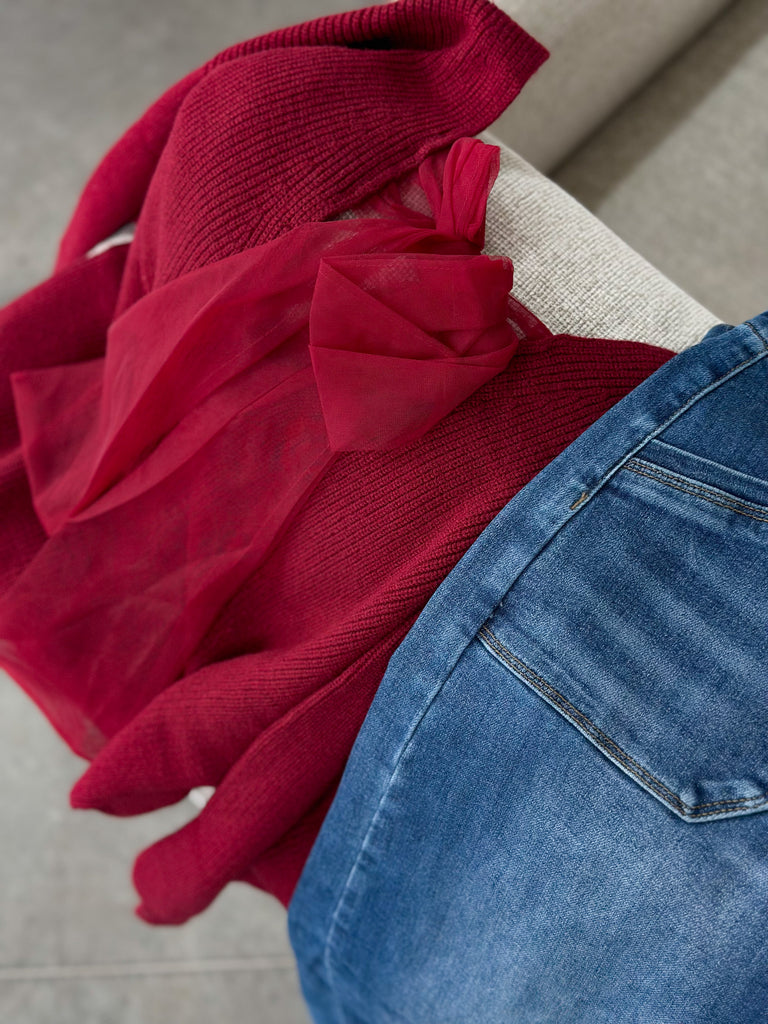 Let’s Get Festive Bow Back Sweater [espresso & burgundy]