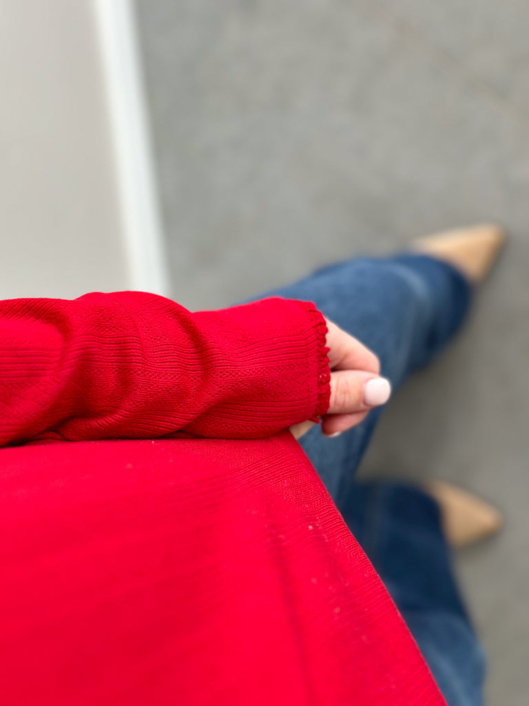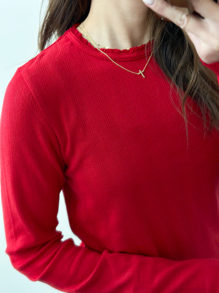 Red mini Ruffle Pointelle Top