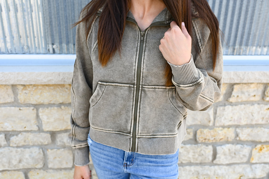 ✨Scuba Fleece Full Zip [Acid Wash Olive]