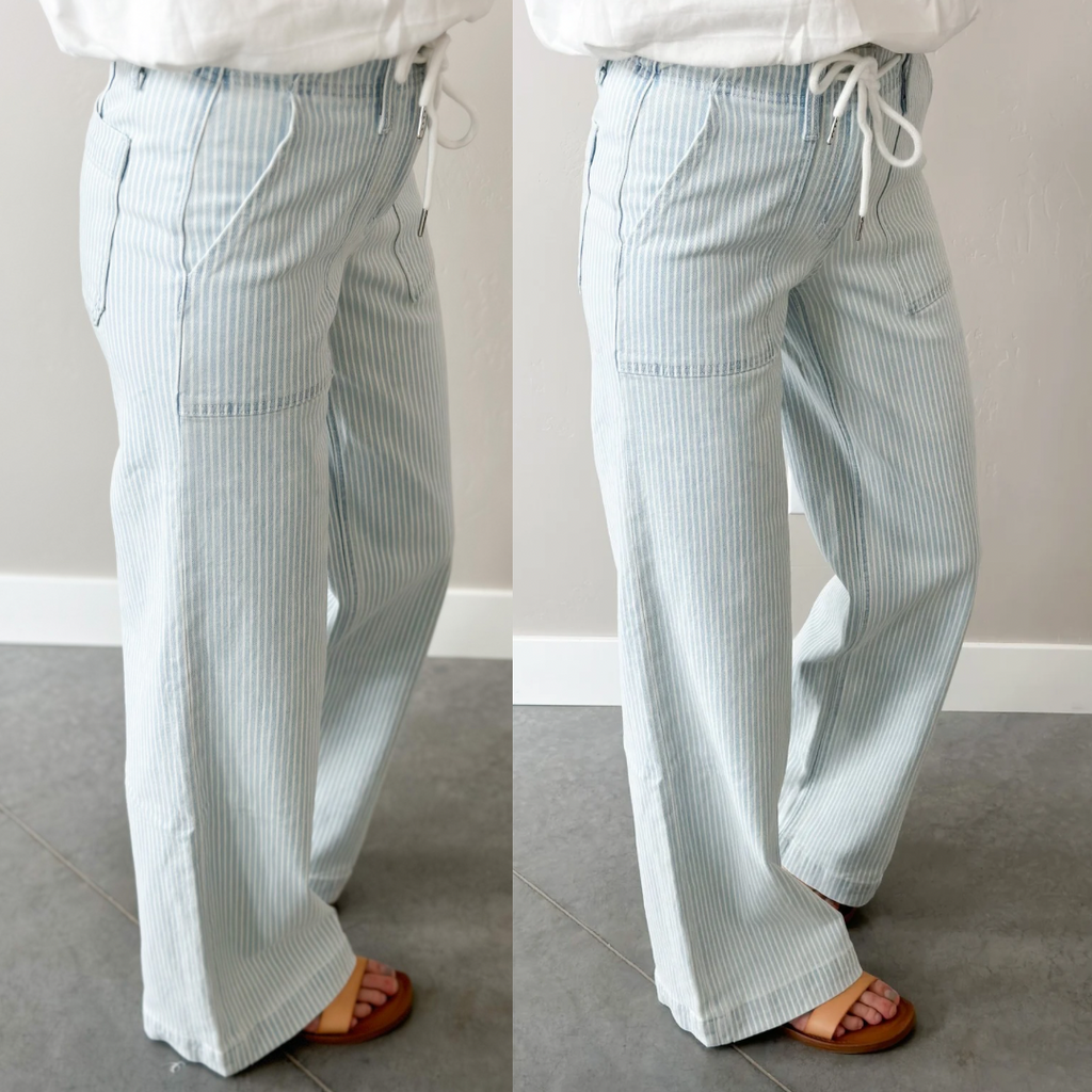 Sweet Stripe Drawstring Jeans [pre-order ready in 7-14 days]