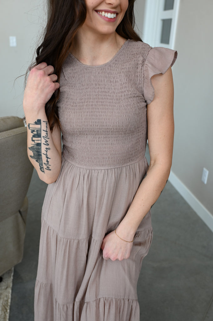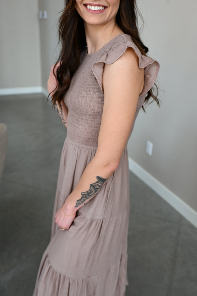 Tia Smocked Top Dress [taupe + black]